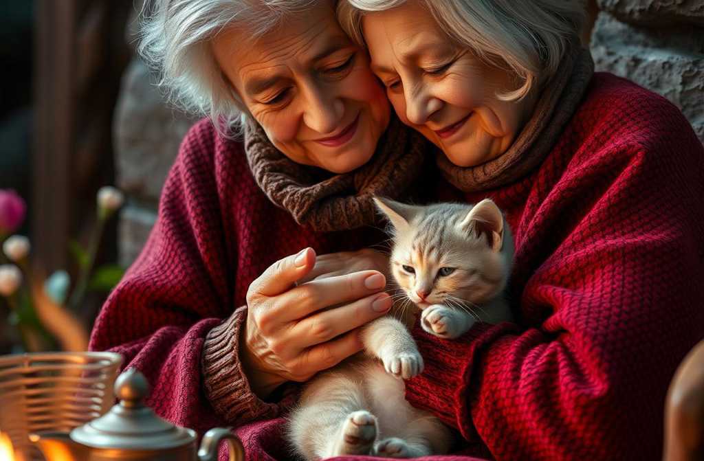 Soon the kitten, warmed by the fire, began to lap the milk Margaret carefully poured for it. The house, which had felt empty for years, suddenly buzzed with conversation. The kitten purred while listening to Margarets humming, and it played with a ball of yarn as she knitted socks and even a pair of mittens.