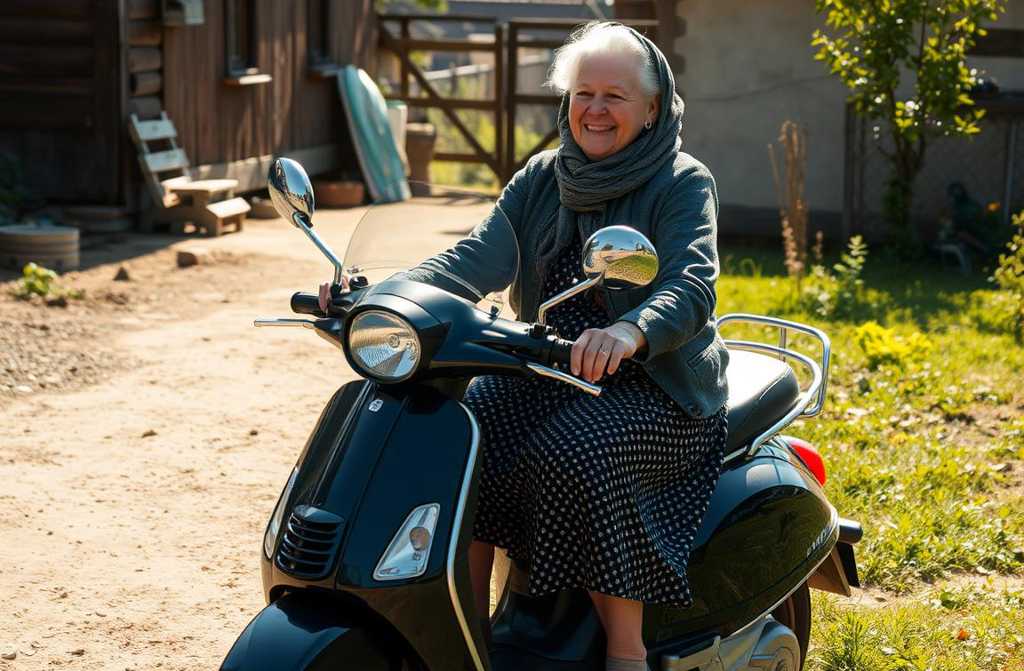 There he was, all chirpy, perched atop his lovingly repaired old moped.