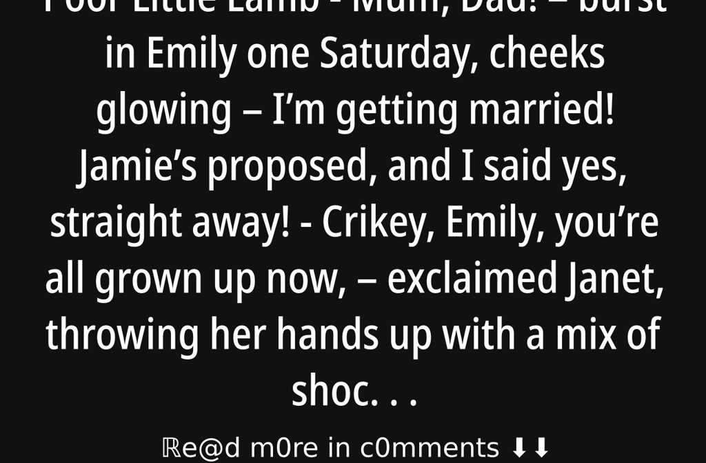 – Mum, Dad! burst in Emily one Saturday, cheeks glowing Im getting married! Jamies proposed, and I said yes, straight away!