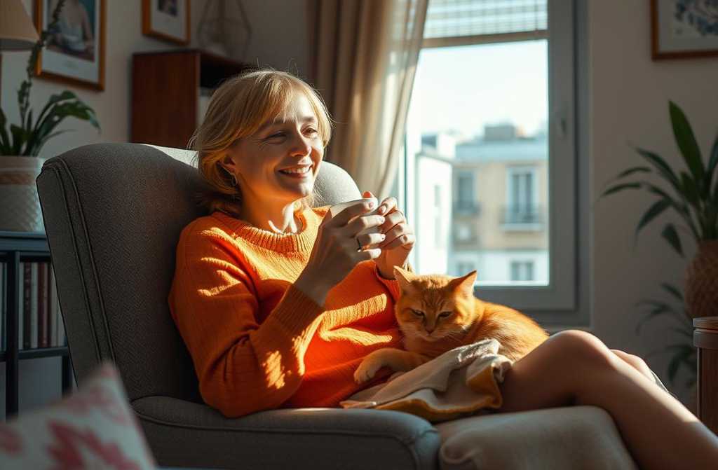 Living alone doesnt bother her. She runs a small freelance graphic design business, earns a modest income in pounds, and enjoys her independence, often hosting her nieces children and Mary for tea. Though she isnt a genius, she always finds something to occupy her mind and never gets bored. She reads, swims, practices yoga, loves travelling, and occasionally helps out at a local community centre. She feels content.