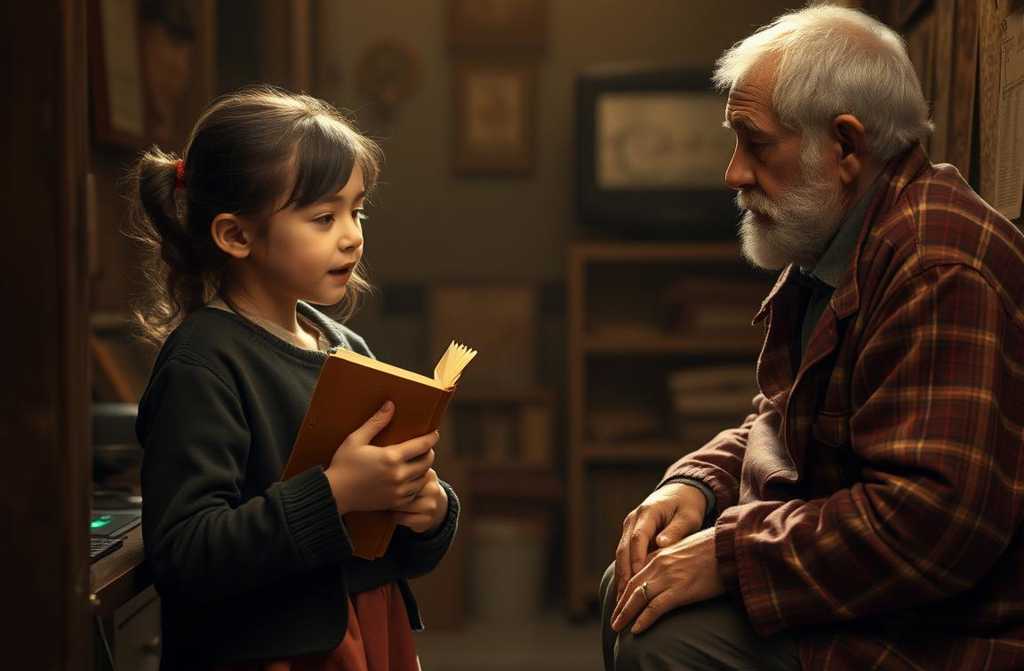 The presenter, an older man with a thick grey moustache, eyed her skeptically. His office was cluttered with papers, yellowed posters, and an old radio humming faintly in the background.