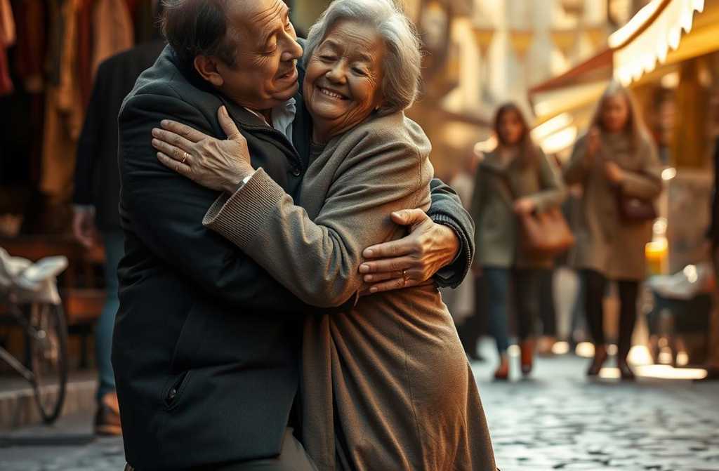 A crowd had gathered, silent. They watched as the broken man embraced the mother he thought hed lost.