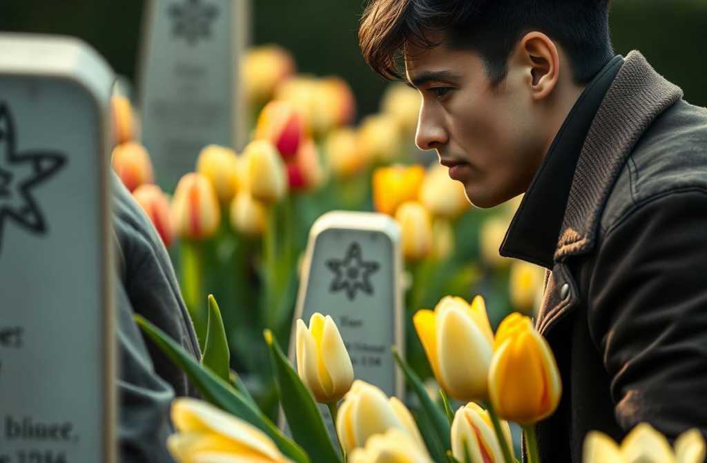 The cab pulled up outside the cemetery gates. A young man stepped out and approached the woman selling flowers by the entrance. “Twelve tulips, please,” he said. After paying in pounds, he lowered his head and walked through the iron gates into the quiet rows of gravestones.