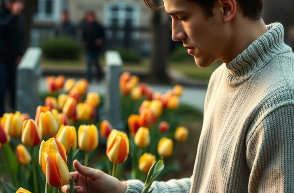 The taxi pulled up outside the cemetery gates. A young man stepped out and approached the woman selling flowers by the entrance.