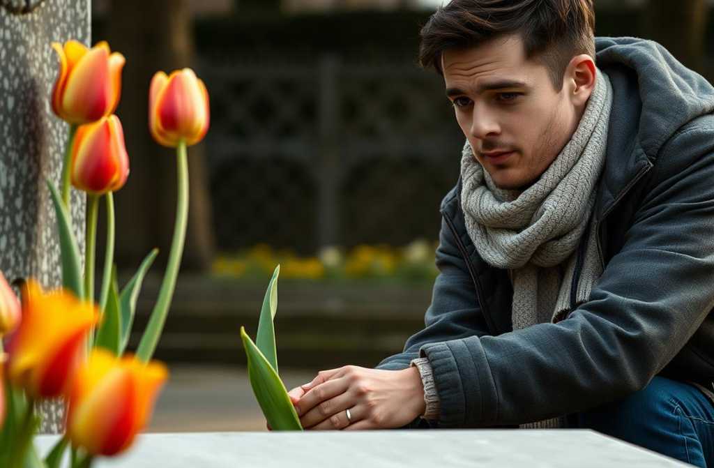 The taxi pulled up outside the cemetery gates. A young man stepped out and approached the woman selling flowers by the entrance.
