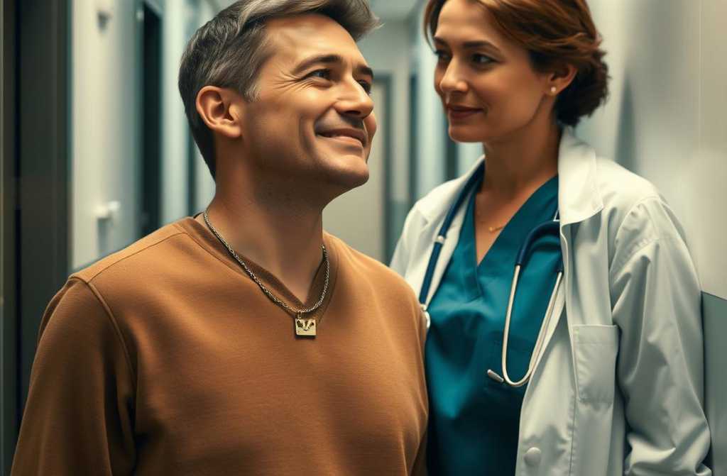 The doctor, a man in his forties, entered later. Hows our hero today?