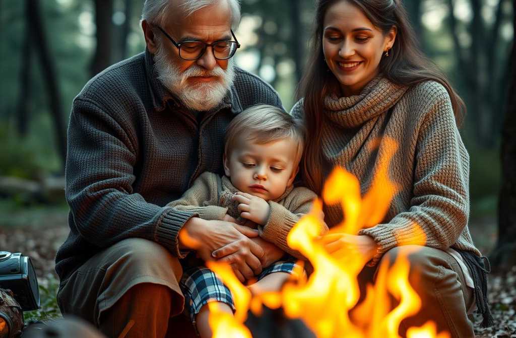 The nights coming. If granddad doesnt wake, hell freeze on the cold ground. We cant just sit idle. Tommy pulls a lighter from his backpack, gathers dry twigs, and struggles to start a fire. After a few attempts the flames catch.