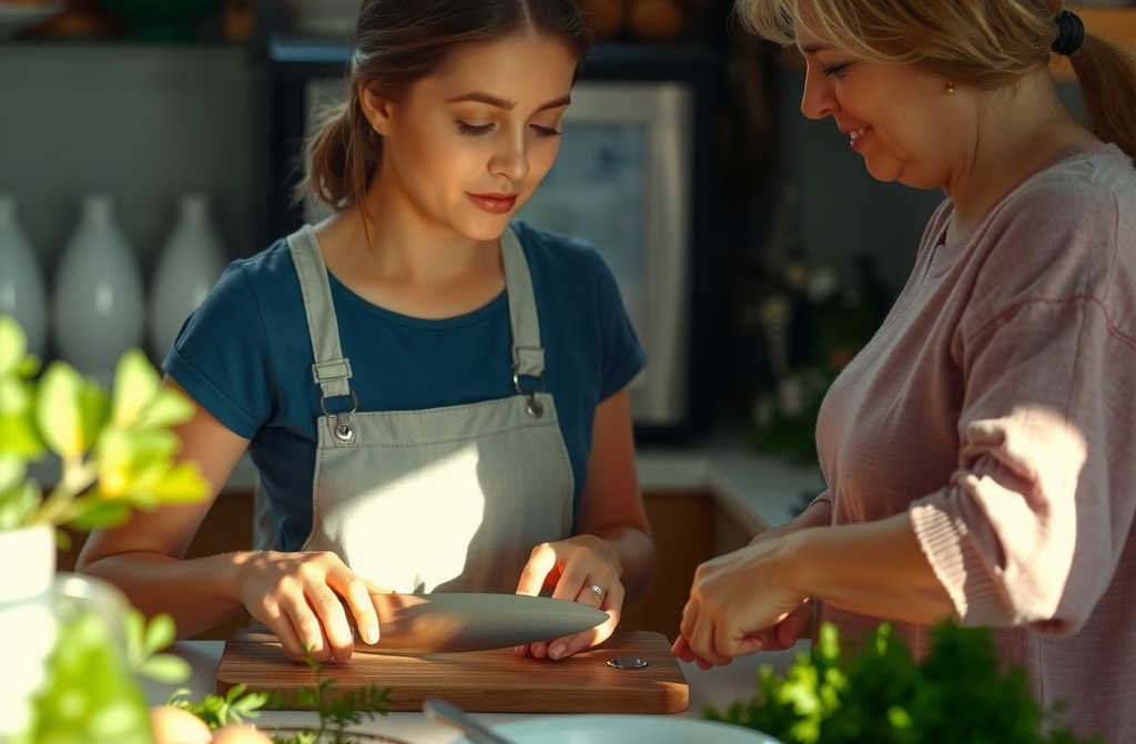 Jean picked up the knife, cut the eggs into even cubes. Familiar workher hands remembered how.