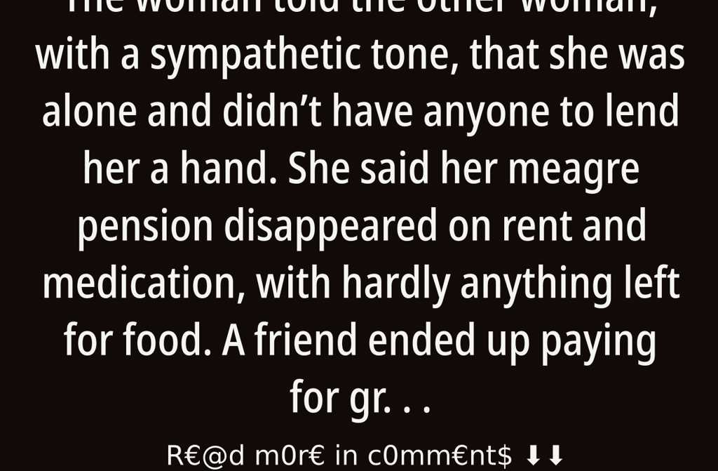 The woman told the other woman, with a sympathetic tone, that she was alone and didnt have anyone to lend her a hand. She said her meagre pension disappeared on rent and medication, with hardly anything left for food. A friend ended up paying for groceries for the poor old lady.