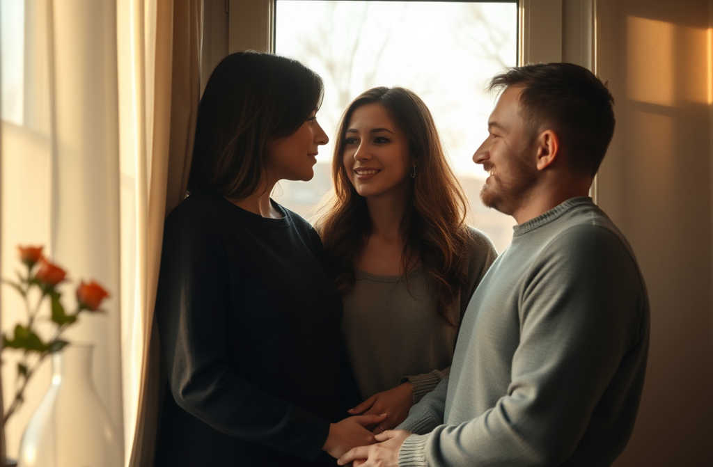 Emily dried her face with the hand towel and then heard voices those old walls carried every sound if you listened. James had gone back through to the kitchen and was talking with his mum. Emily heard