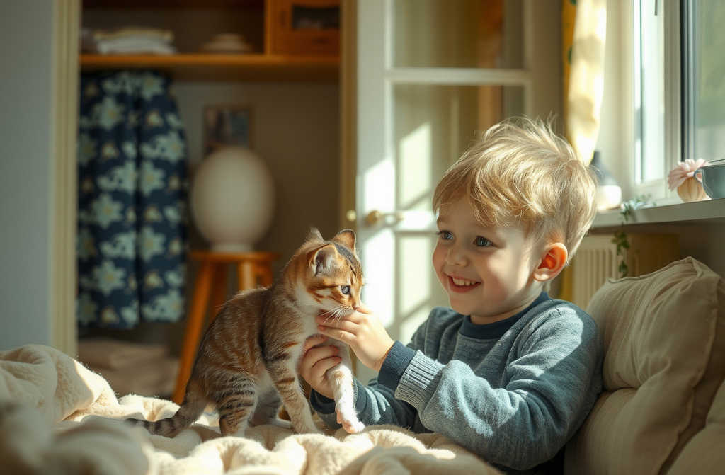 The cat seemed to sense this gentle boy meant no harm. She approached and pressed her head against his palm.