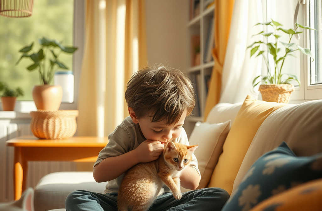 The cat, sensing no threat, understanding that this boy would never hurt her or her kitten, crept closer and pressed her head to his tiny palm.