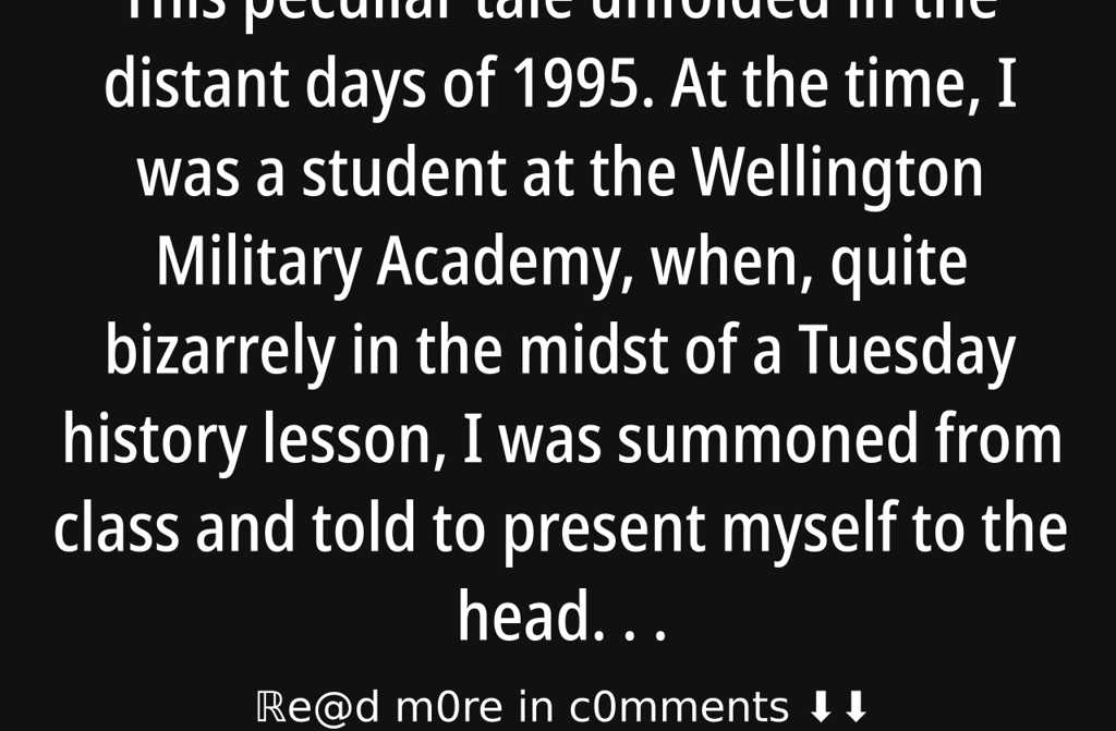 This peculiar tale unfolded in the distant days of 1995. At the time, I was a student at the Wellington Military Academy, when, quite bizarrely in the midst of a Tuesday history lesson, I was summoned from class and told to present myself to the headmaster. The generals office was full of shifting shadows and heavy air, with a woman quietly sobbing in a worn velvet armchair, dabbing her tears with a crumpled lace handkerchief.