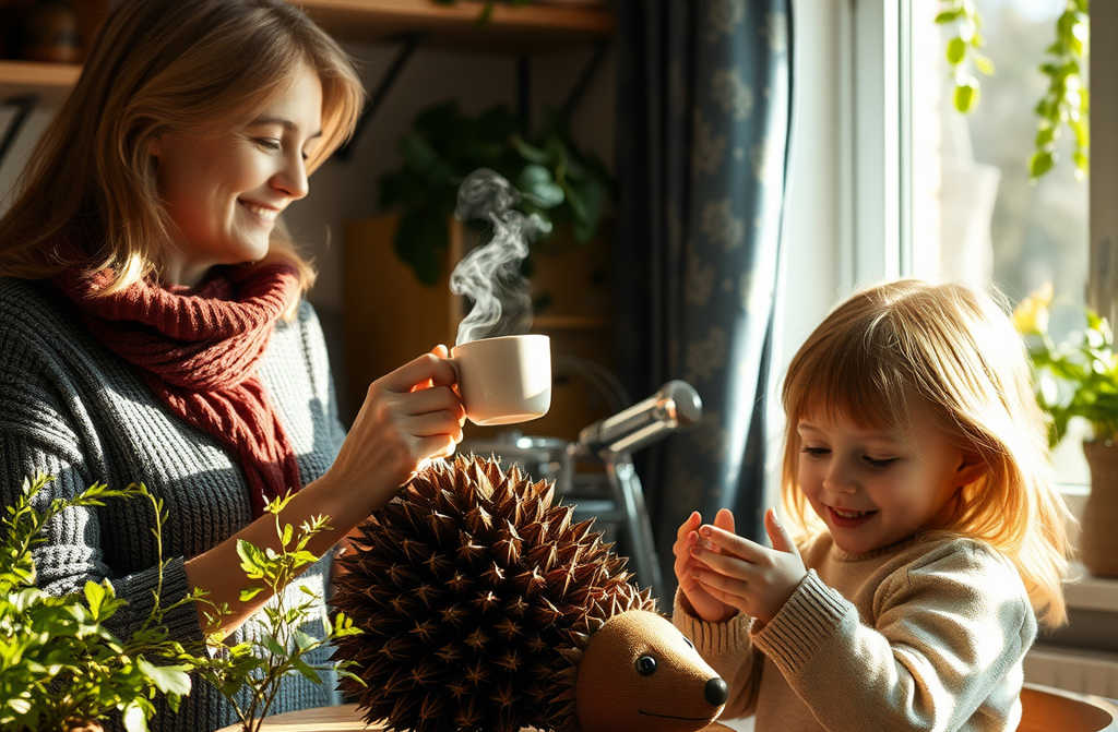Mum! Emily shouted as she burst into the hallway, hugging Natalies legs. Aunt Christina helped me make a pinecone hedgehog for school!
