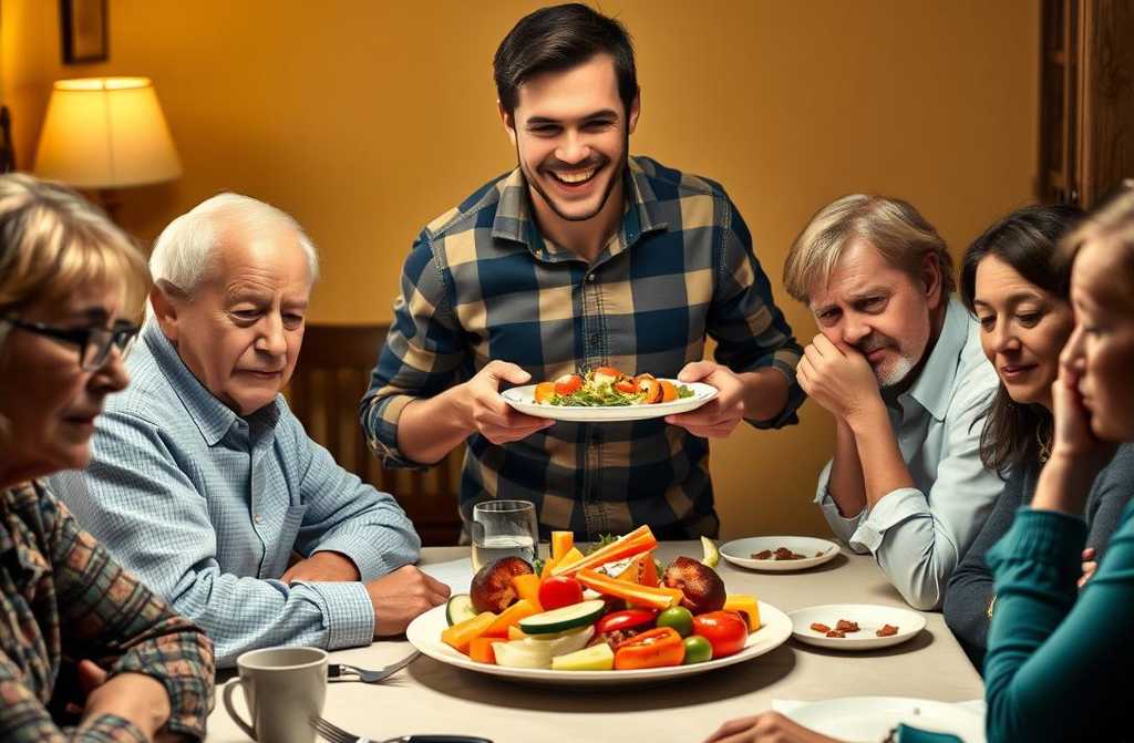 It was a heartfelt evening—soft voices, warm memories, family gathered close. Then Wayne… vanished. We barely noticed until he burst back in, brandishing a cucumber and two tomatoes arranged in a grotesque parody. Grinning, he held them up like some vulgar trophy. “Spot the resemblance?”