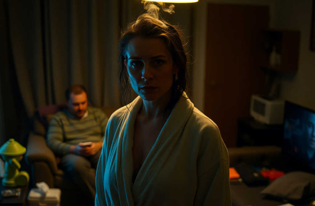 When I stepped out of the bathroomwhere Id stood under the shower for at least ten minutes, numb to the heat or the coldshe was already on the sofa, scrolling through her phone. The flat looked, as usual, like a battlefield. I walked past her without a word.
