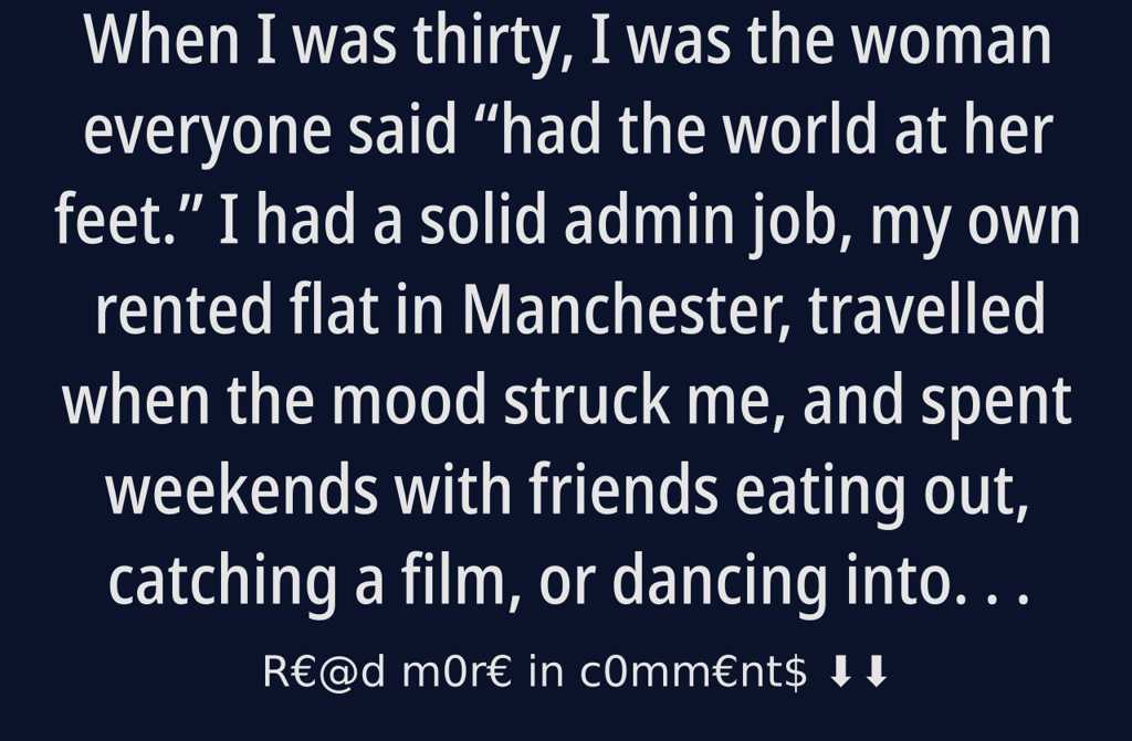 I had a solid admin job, my own rented flat in Manchester, travelled when the mood struck me, and spent weekends with friends eating out, catching a film, or dancing into the night.