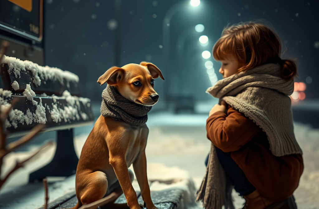When Mother and I were returning from the market, I was the first to notice him. He wasnt curled beneath the bench, as weary or stray dogs often do, but sat upright on the bus stop seat, as if he were a personcalm, assured, watchful. Squinting against the snows glare, he gazed down the road, occasionally lifting his head to scan the passersby, as though searching for someone. He didnt dart about, bark, or beg for attentionhe simply sat and waited. It was startling almost human.