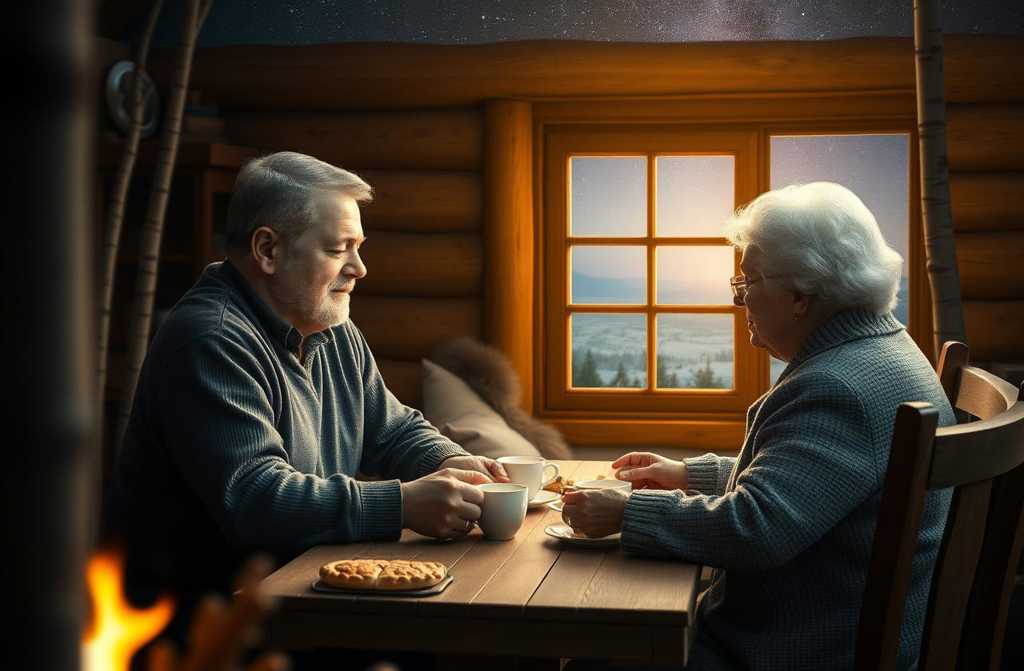 He wordlessly shrugged off his coat, hung it on the old hook, same as when he was a boy. Went to the kitchen, poured himself tea. His mum slid a plate of scones across the table. That scent—apples, vanilla. Home.