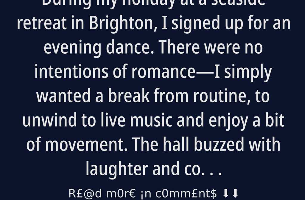 During my holiday at a seaside retreat in Brighton, I signed up for an evening dance. There were no intentions of romanceI simply wanted a break from routine, to unwind to live music and enjoy a bit of movement.