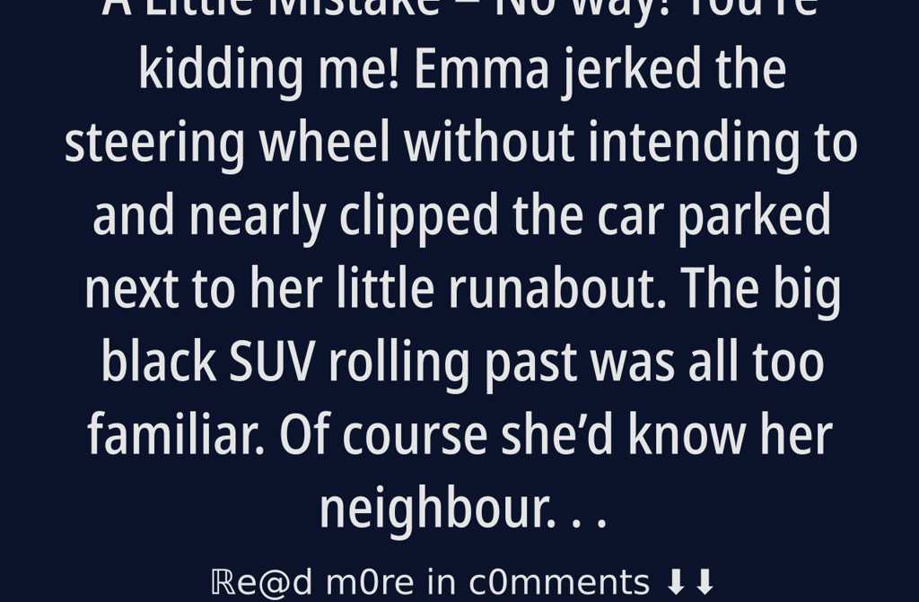 Emma jerked the steering wheel without intending to and nearly clipped the car parked next to her little runabout. The big black SUV rolling past was all too familiar. Of course shed know her neighbour Toms carshe sent her boys off to school in it every morning.