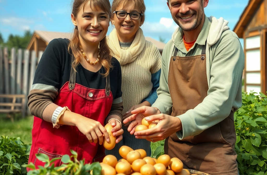 When the men finished, the whole clan helped put in the potatoes.