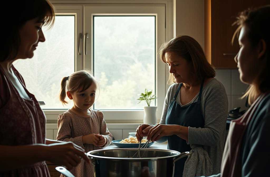 Silently, Helen carried Annie to the kitchen, pulled out frozen burgers, and set a pan on the stove.