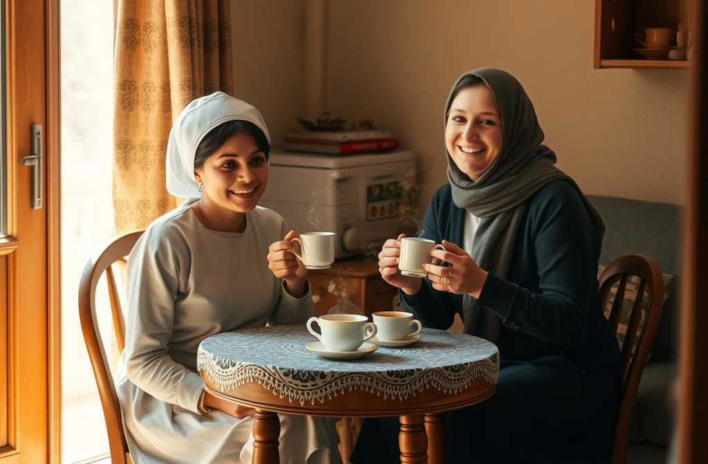 She tried to make it cosy: light curtains, a pot of flowering geranium on the windowsill, a bright tablecloth on the kitchen table, two redspotted pots, and a few extra pieces of crockery. The place was simple, but it was hers.