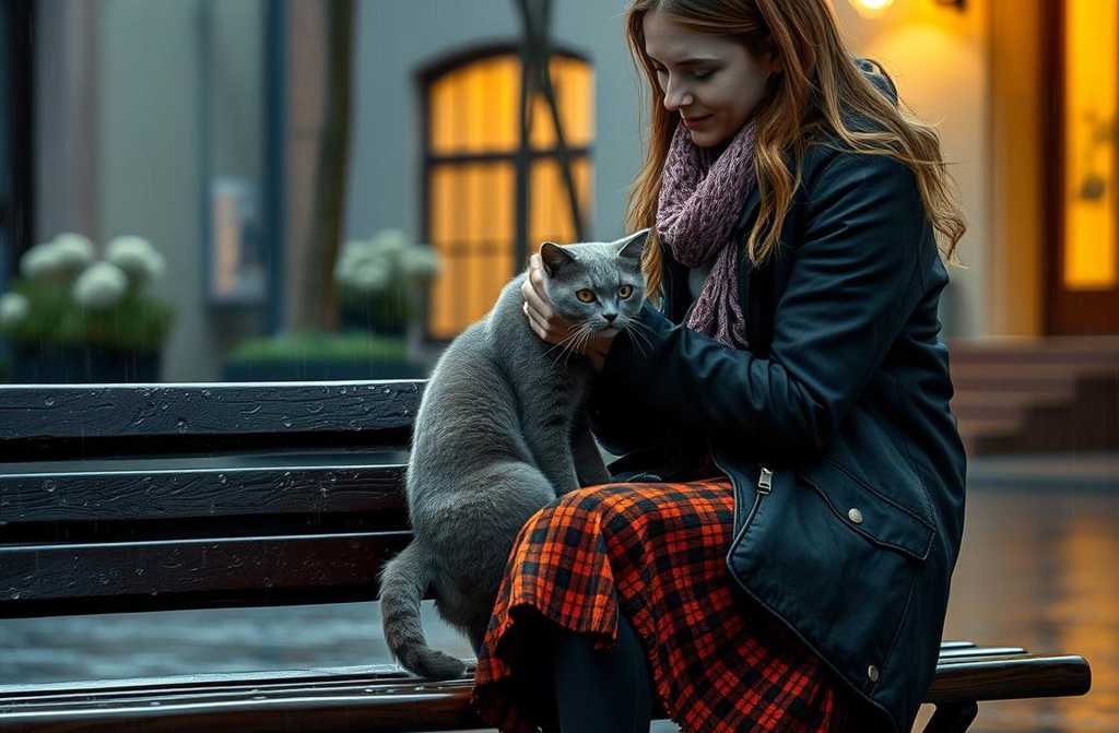 The cat, trembling in her arms, turned from fear to bewilderment, and then, as if the tension melted away, his body softened back into a limp grey sack of fur. She cradled the cold, damp stray close and carried him inside.