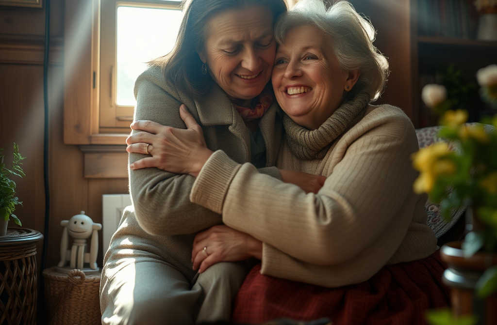 Louisa entered, wiping her hands on her apron, and exchanged warm greetings with her sister.