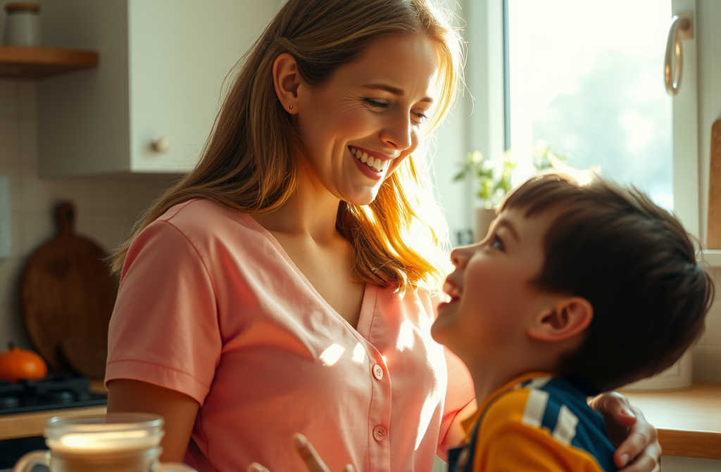Im going to have a brother or sister? Thats brilliant! Ill help you, Mum! her son exclaims, full of excitement, giving her a big hug. Overcome with emotion, Emily bursts into tears, a mix of relief after her anxious wait, happiness at having such a wise and loving son, and regret for her past mistakes. Sitting in the kitchen, Emily weeps quietly and keeps repeating to herself, Mum, forgive me Mum, forgive me Suddenly, she notices a puzzled look on her sons face. Concerned, she asks, Whats the matter?