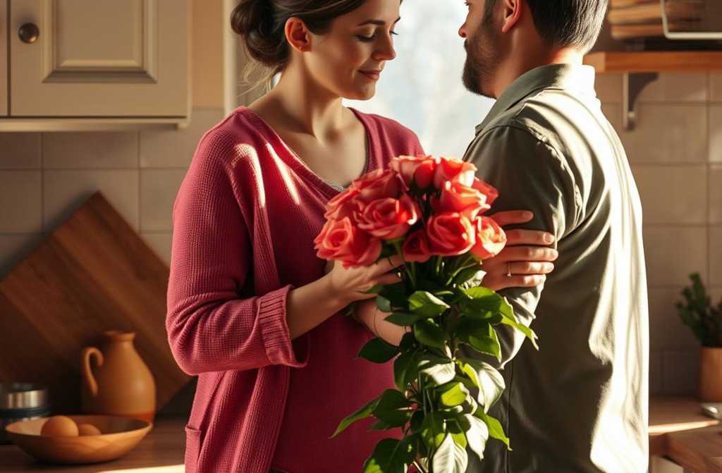 That night, he came home late, clutching a bouquet of red rosesMarys favourite.