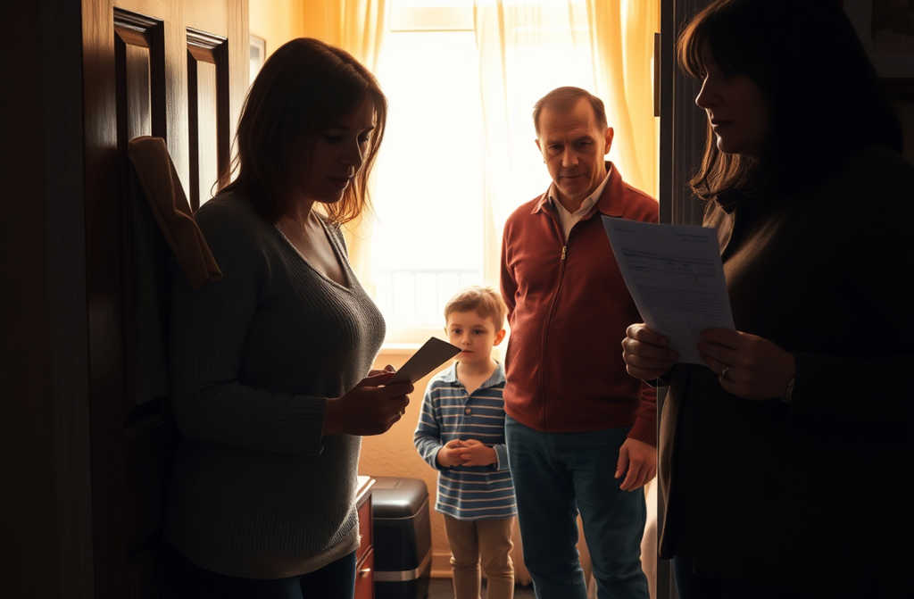 The knock at the door came just as I was setting the kettle on. Two strangers stood therea man and a woman, both stiff in their posture, like theyd rehearsed this moment a hundred times.