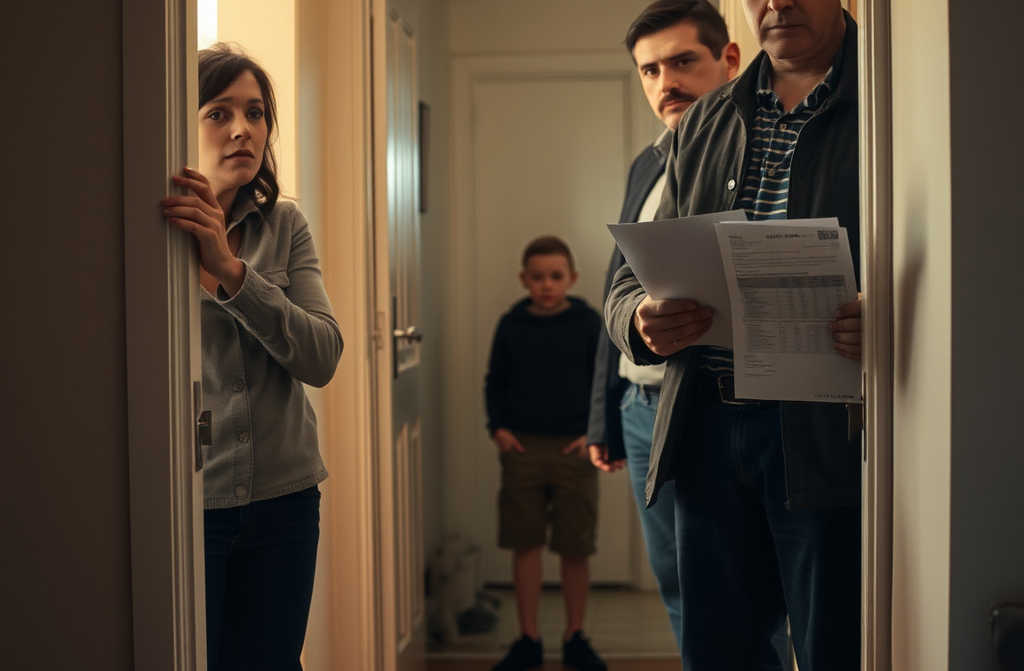 The front door slammed. James stood there, taking in the scene: strangers, his wife in tears.
