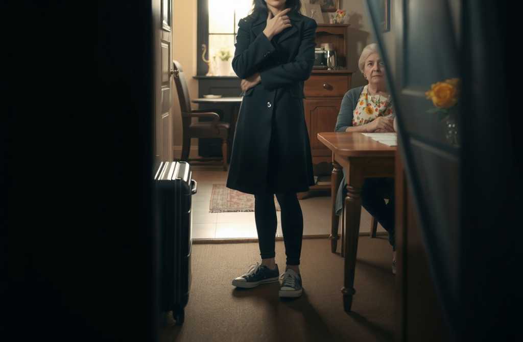 Julia leaves the suitcase by the door, takes off her boots and coat. She stretches out on the old sofa to rest, Anne sitting close and wrapping her in a hug.