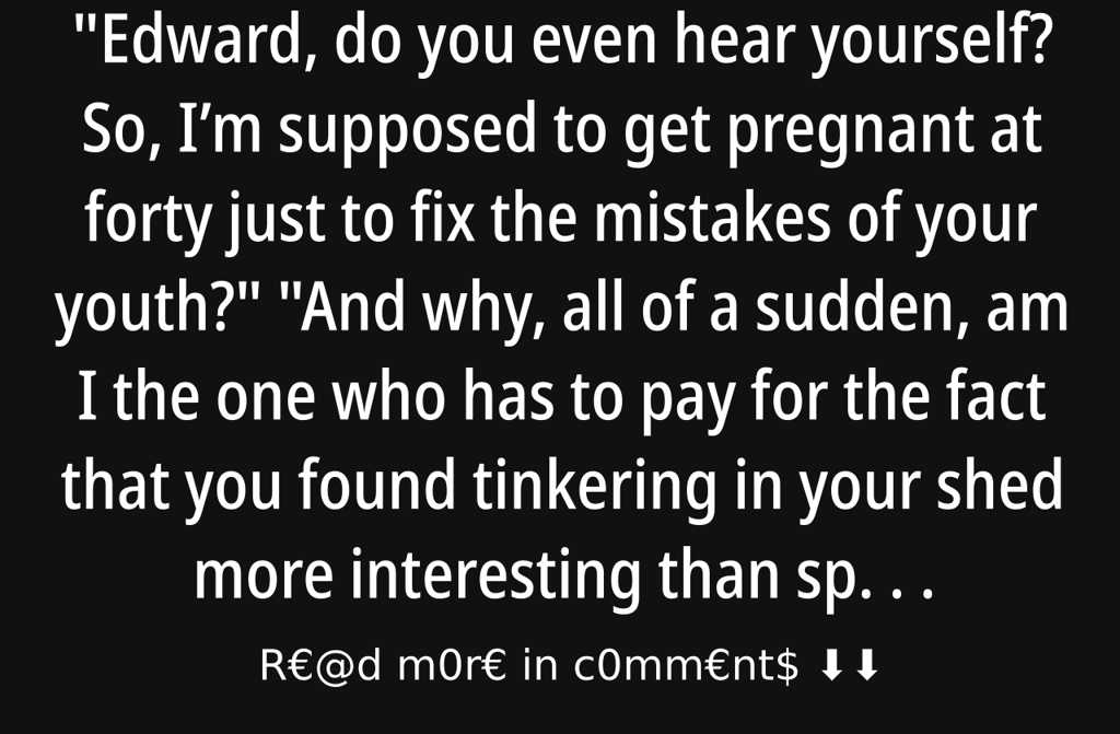 “Edward, do you even hear yourself? So, Im supposed to get pregnant at forty just to fix the mistakes of your youth?”